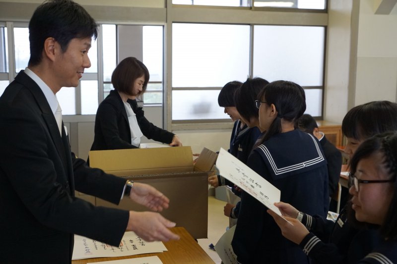 式典後は、最後の学級活動が行われ、各担任から卒業証書が手渡されました。