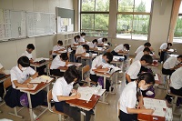 8/24(水)、25(木)、29(月)、30(火)の4日間、本校で夏季学習会を行いました。この学習会は希望者を対象としており、国語・数学・英語・社会・理科の5教科(社会・理科はどちらか1教科を選択)の復習と、2学期のスムーズなスタートが切れるよう夏休みから勉強モードへの切りかえを目的としています。感染症拡大の影響を受け、3年ぶりの実施となりました。