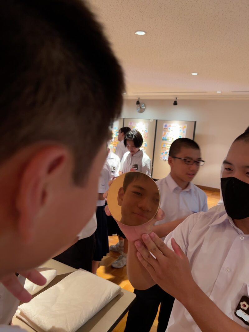社会科「郷土教育―布留遺跡の歴史―」 2024年11月13日(水) |イベント|新着順| 天理参考館で開催された、世界各地の生活文化資料・考古美術資料を収集・研究・展示する第96回企画展「布留遺跡の歴史―物部氏より前から後まで―」。天理参考館学芸員の解説付きで2年生が見学・鑑賞しました。また、郷土に誇りと愛情を持ってもらえるようにと、実際に布留遺跡から出土した土器で粘土を切ることや、銅鐸を鳴らすことを体験。生徒たちは、学芸員の方の話を興味深そうに聞き入り、知識を深めていました。 #天理中学校 #天中 #社会科 #天理参考館 #布留遺跡 #郷土教育 « 前のページ吹奏楽部 第41回定期演奏会次のページ »社会科・家庭科「消費者教育―自立した消費者―」