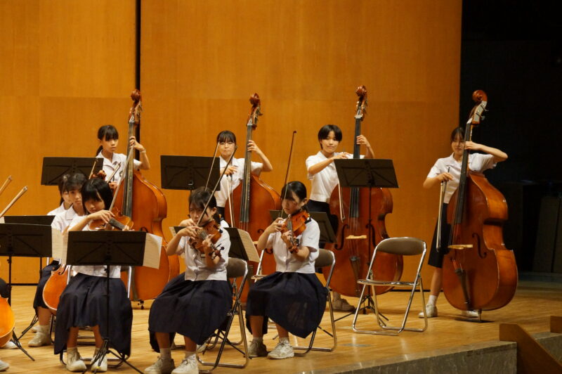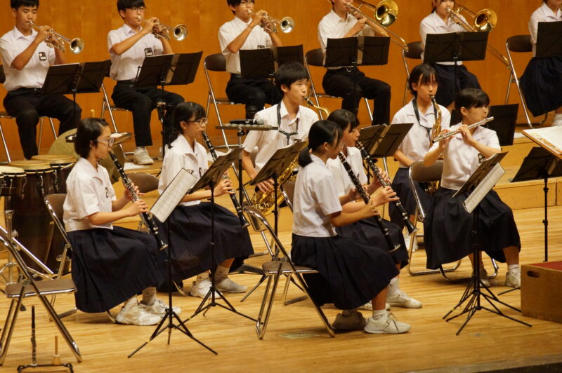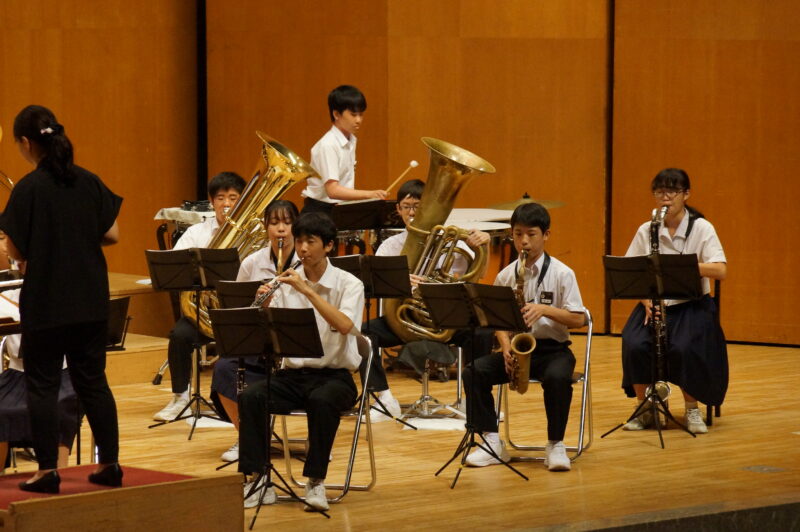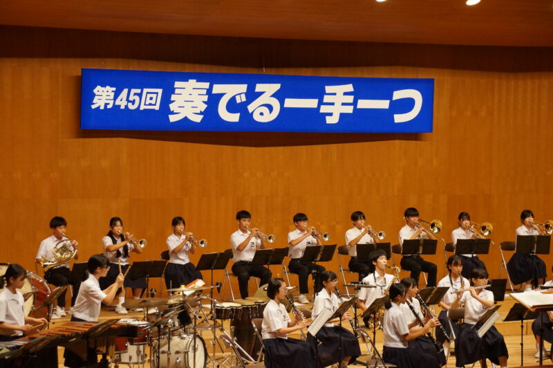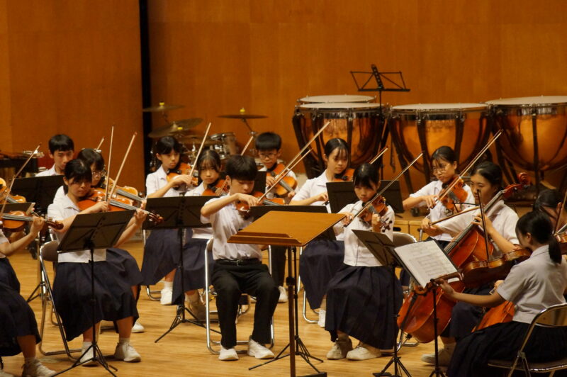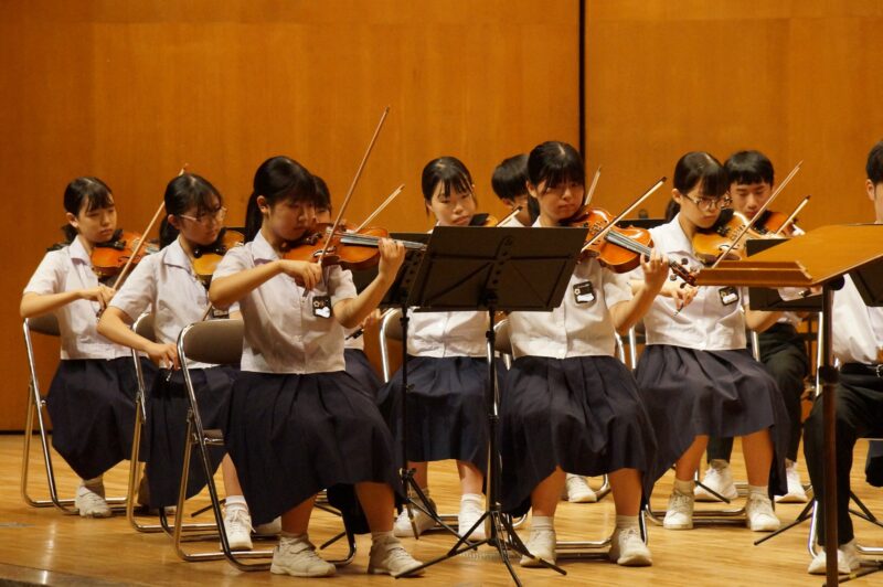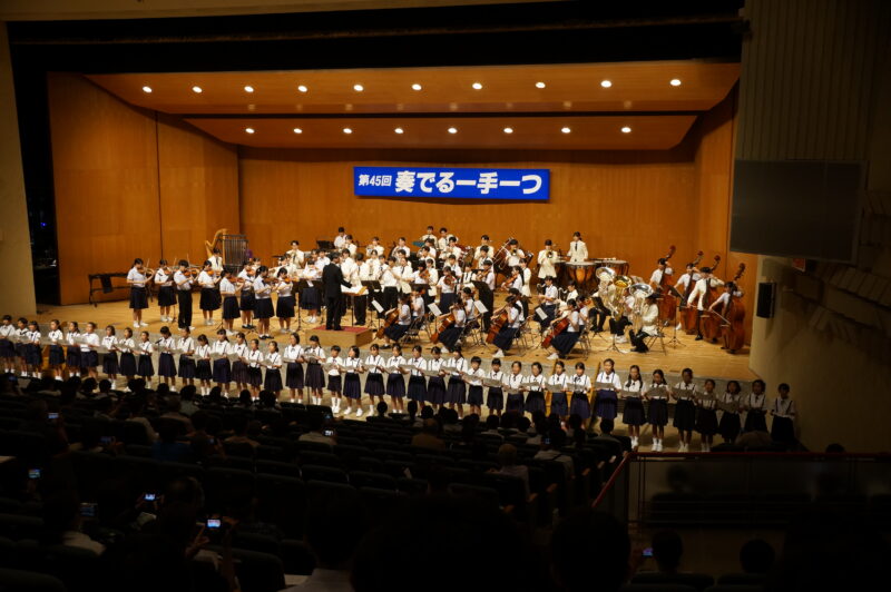弦楽部・吹奏楽部 奏でる一手一つ出演 2025年09月24日(水) |新着順| 9月14日(日)、天理市民会館やまのべホールで行われた「第45回奏でる一手一つ」に、本校弦楽部・吹奏楽部が出演しました。この演奏会は天理教音楽研究会によって主催され、天理教内の演奏団体が出演しています。今回は天理教音楽研究会創立70周年記念オープニングコンサートとして開催。 天理中学校からは、吹奏楽部・弦楽部がそれぞれ出演し、コンクール曲などを演奏。吹奏楽部では、天理教音楽研究会創立70周年を記念して、吹奏楽部のOB・現役である親・子・孫三世代のトラペット奏者による演奏も披露。演奏会の最後は合同演奏で幕を閉じました。 ▶演奏会のお知らせ ・弦楽部 第13回定期演奏会 11月15日(土)13時30分開場 14時開演 陽気ホール ・吹奏楽部 第42回定期演奏会 11月16日(日) 13時30分開場 14時開演 天理市民会館やまのべホール #天理中学校 #天理市 #天理 #天理教 #おぢば #おぢばの学校 #私立中学 #中学受験 #奈良県 #奈良県私立中学 #弦楽部 #吹奏楽部 #奏でる一手一つ #天理教音楽研究会 #天理市民会館 #やまのべホール « 前のページ家庭科 保育実習次のページ »家庭科「保育―幼児ふれあい実習―」