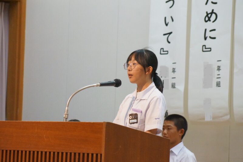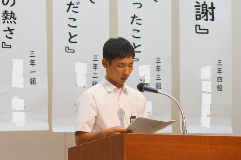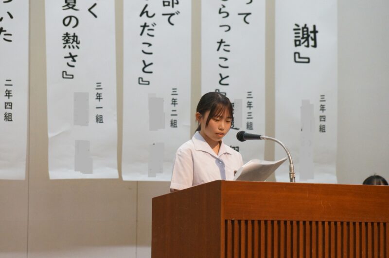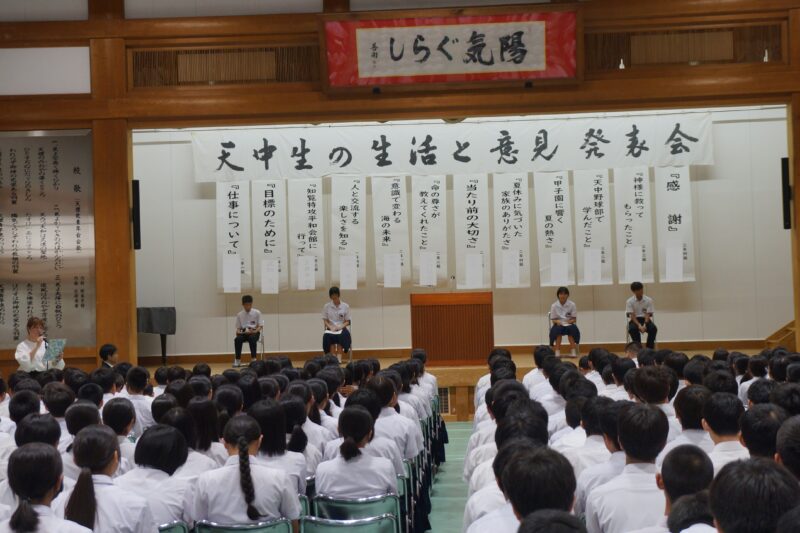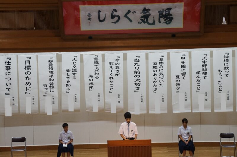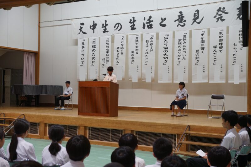 天中生の生活と意見発表会 2025年09月26日(金) |新着順| 9月24日(水)5・6限目、「第42回天中生の生活と意見発表会」が、本校講堂で開催されました。1年生から3年生まで各クラスの代表が、それぞれの熱い「思い」を豊かな表現で立派に発表してくれました。 ご来校いただきました保護者の皆さま、ありがとうございました。 #天理中学校 #天理市 #天理 #天理教 #おぢば #おぢばの学校 #私立中学 #中学受験 #奈良県 #奈良県私立中学 #意見発表会 #言葉の力 #思いを表現する #作文 « 前のページ運動会・応援準備次のページ »校外学習