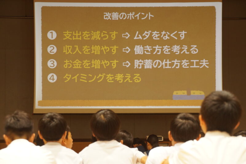 ライフプランニング授業 2025年10月15日(水) |新着順| 10月10日(金)5・6限目、第2学年でライフプランニング授業を行いました。講師に、ソニー生命保険株式会社ライフプランナーの4名の方に来校していただきました。 この授業は進路学習・キャリア教育の一環として行っており、本校では5回目の取り組みとなります。「未来の自分をイメージしよう」をテーマに、生徒たちはライフプランニングについて学びました。将来、どのような支出が必要になるかを想定し、収入と支出のシミュレーションをしました。今回の学習をとおして、これからの人生で夢や目標を持ち、計画的に努力していくことの大切さを学びました。 〈生徒の感想〉 ・今回の授業を通してお金の使い方等によって未来が変わることがわかりました。 ・授業を通してお母さんとかお父さんとか色々お金の使い方を考えてるんだなって思いました。 ・親はこんな大変なことをしていると考えるとすごいと感じました。 #天理中学校 #天中 #2年生 #ライフプランニング #ライフプランナー #ソニー生命 #進路学習 #キャリア教育 #金融教育 #人生設計 « 前のページ令和7年度 秋の教育実習