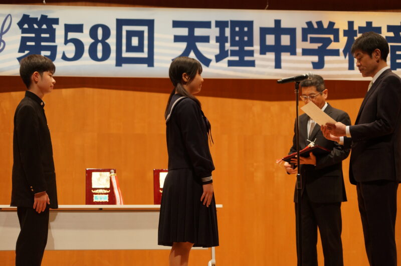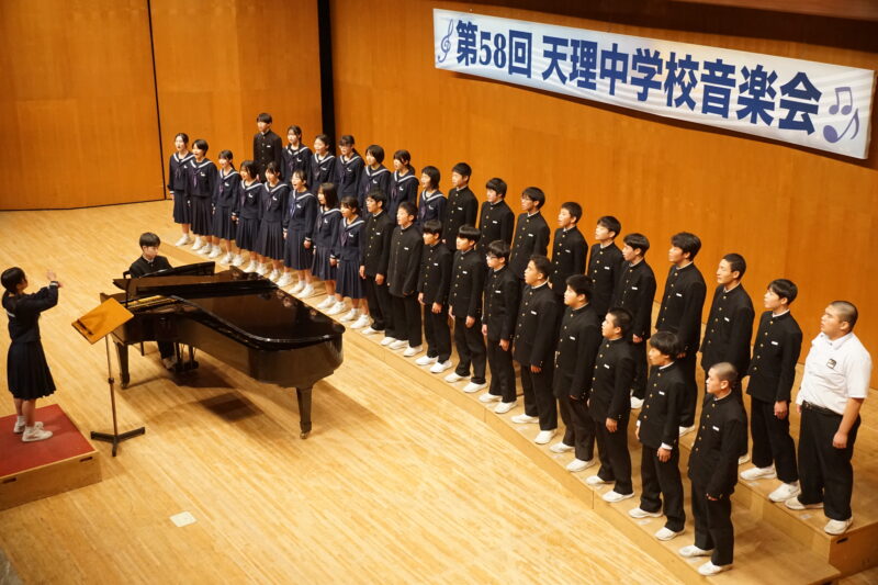 第58回音楽会 2025年11月19日(水) |新着順| 10月30日(木)、第58回音楽会を天理市民会館やまのべホールで開催しました。生徒たちは、音楽の授業だけではなく、音楽会の1週間前から毎日時間をとって合唱練習に取り組みました。それぞれの熱い思いをのせたハーモニーが、ホールに美しく響き渡りました。 審査には、外部より4名の先生方にお越しいただきました。1年生から順番にクラス合唱が行われ、会場から熱い拍手が送られました。3年4組、2年2組、1年4組が優勝し、賞状と盾が贈られました。 #中学校音楽会 #クラス合唱 #天理市民会館 #ハーモニー #努力の成果 #感動をありがとう #学校行事 « 前のページ第2学年 英語スピーチコンテスト次のページ »国語科 天理大学特別授業・参考館見学